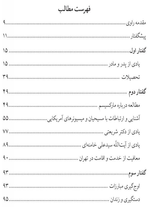 گفتار دوم به چگونگی آشنایی وی با دکتر علی شریعتی و آموزههایی که از آیتالله سیدعلی خامنهای در جوانی فراگرفته بود اشاره دارد؛